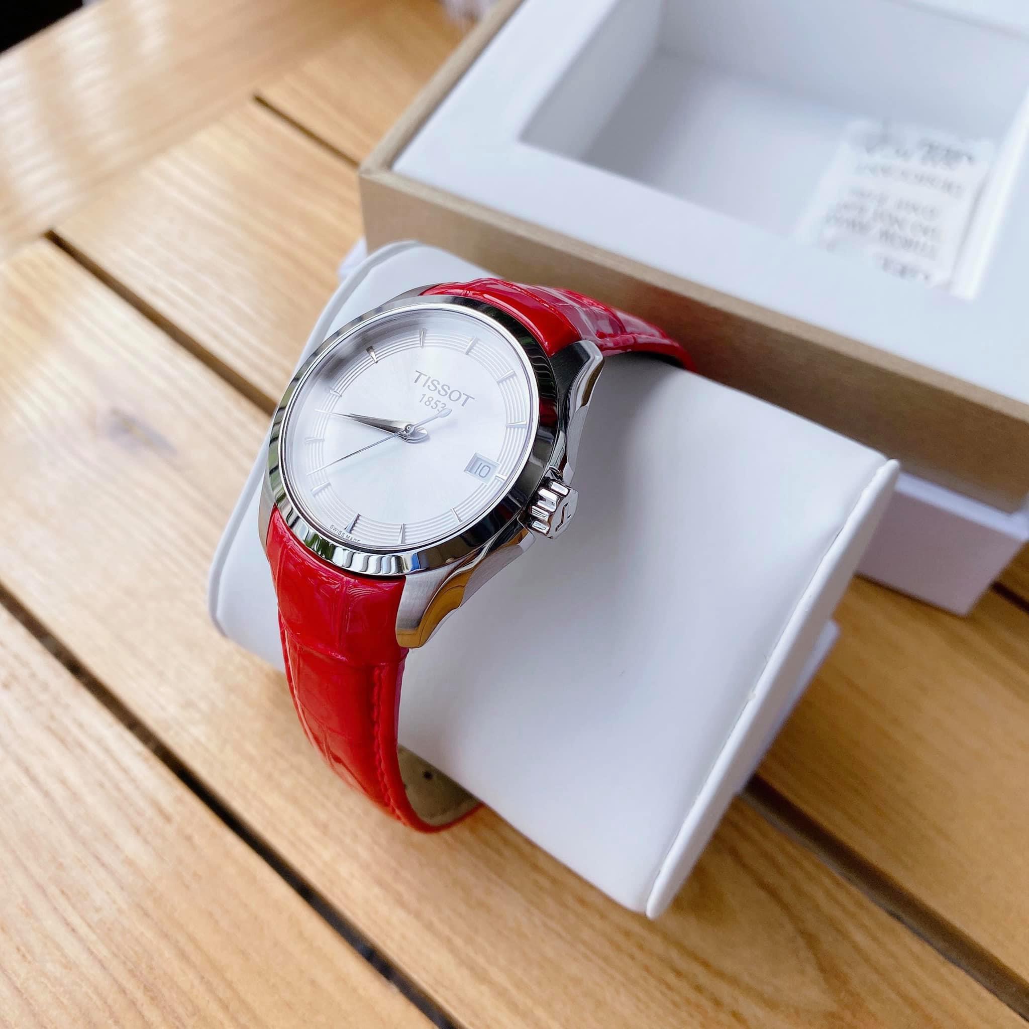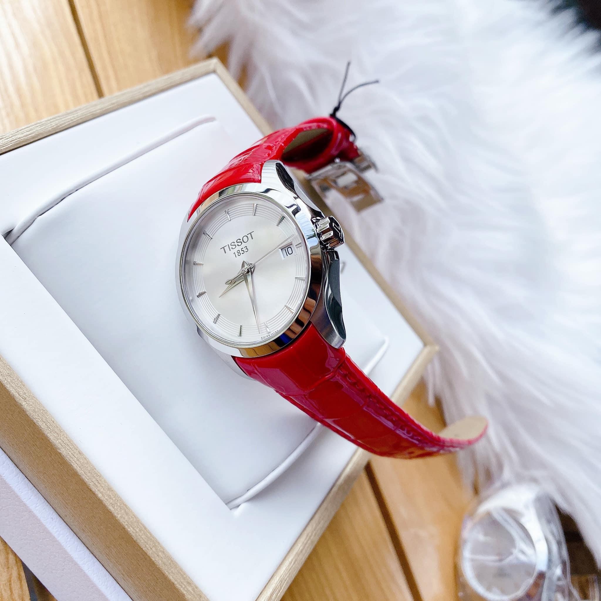 Sự kết hợp nổi bật của sắc đỏ và mặt đồng hồ trắng sáng lên tay nổi bật và tôn da lắm nhé các tình yêu