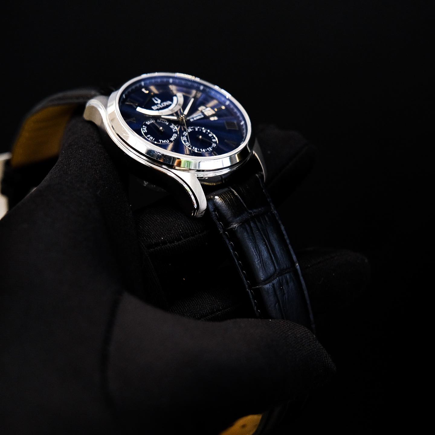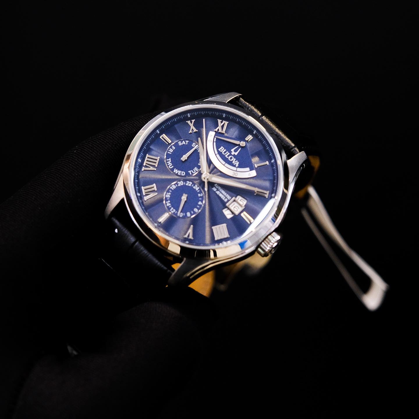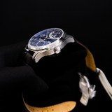 - Vỏ bằng thép không gỉ, mặt số xanh đánh vân tròn cực kỳ bắt mắt.