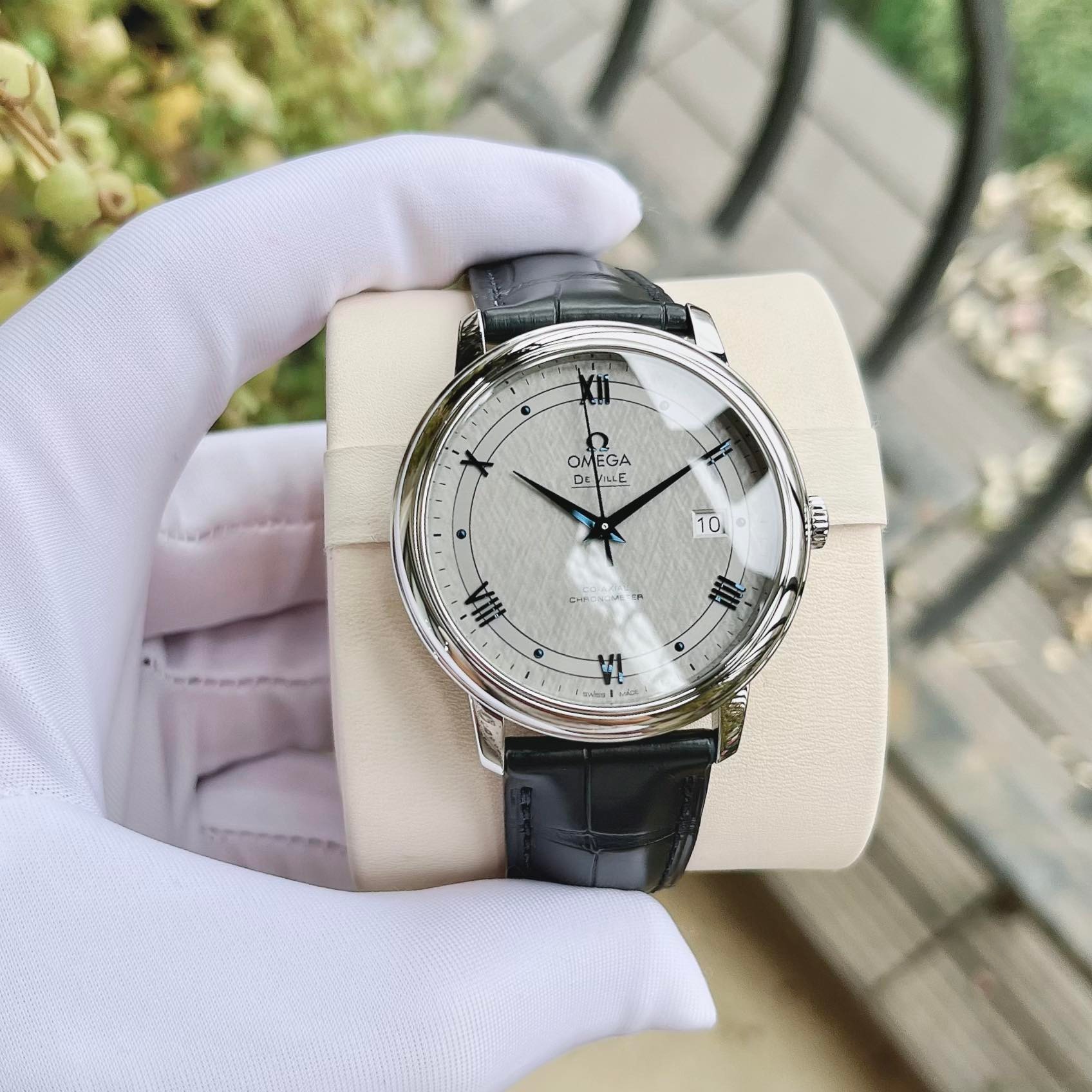 - Cọc số La Mã được nung xanh ở các vị trí 3, 6, 9 và 12 giờ.