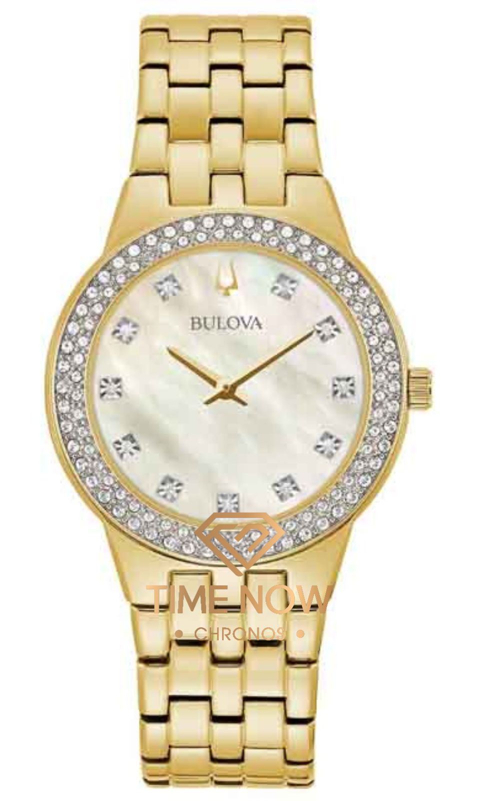 Bulova Women's Crystal Gold-Tone Watch with Mother-of Pearl Dial and Heart Pendant Box Set
