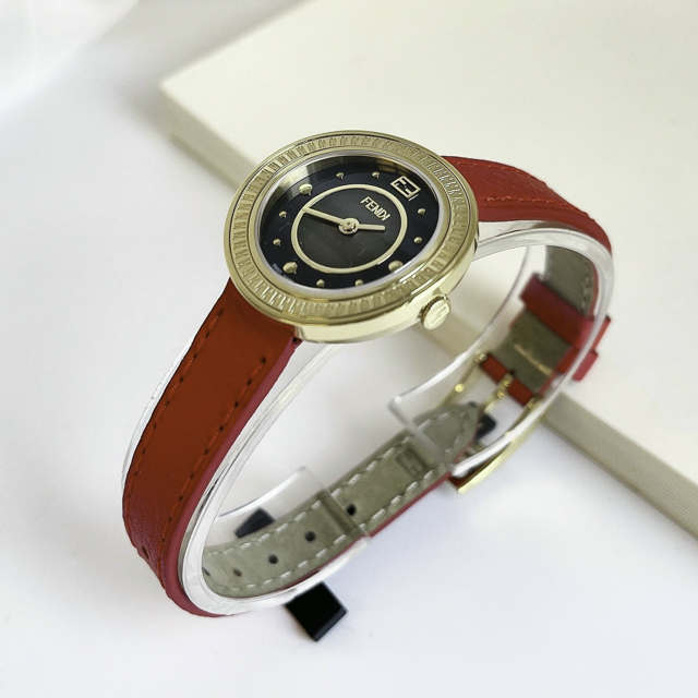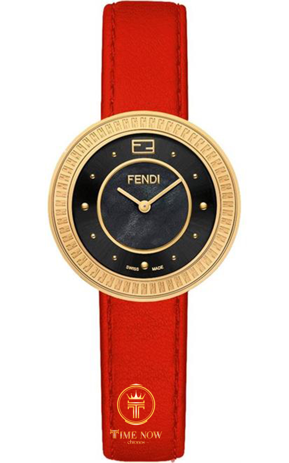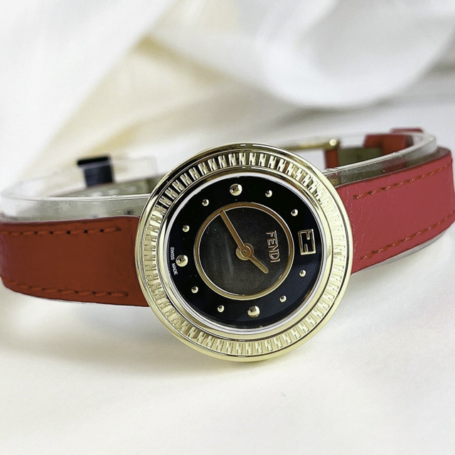 • - FENDI F370421573 Mẫu mới với cọc số đinh tán siêu hot, mặt khảm trai đen , màu đỏ siêu đẹp