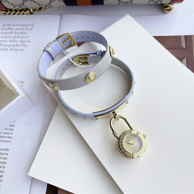 • - VERSACE VEDW00419 Siêu độc đáo, cá tính. Mua 1 sử dụng đc 3 : đồng hồ lắc, vòng đeo tay và đặc biệt có thể nối 2 dây tạo thành Choker đeo cổ, Mặt đồng hồ thiết kế dạng ổ khoá 2 mặt : 1 bên là đồng hồ 1 bên là biểu tượng thương hiệu