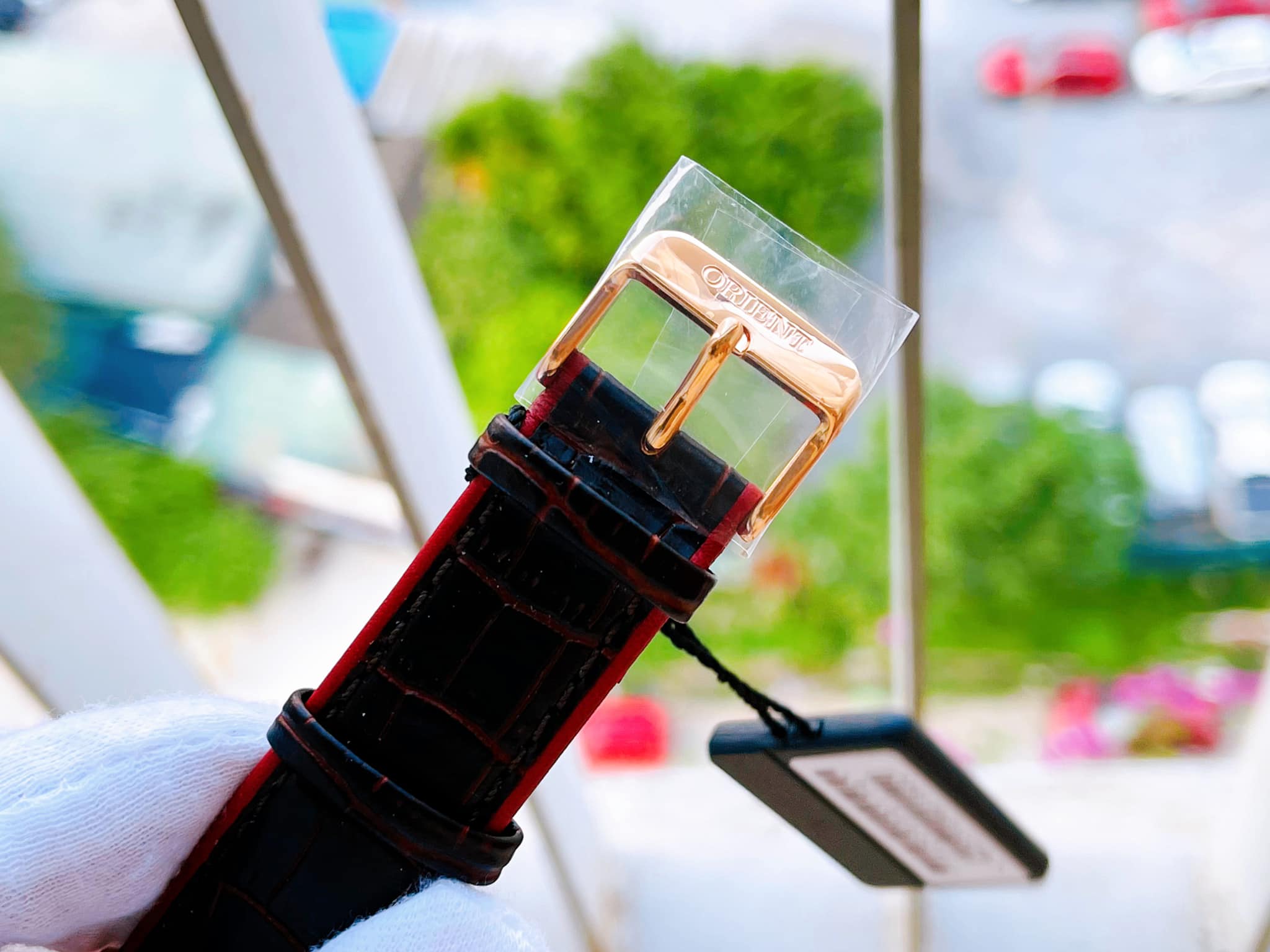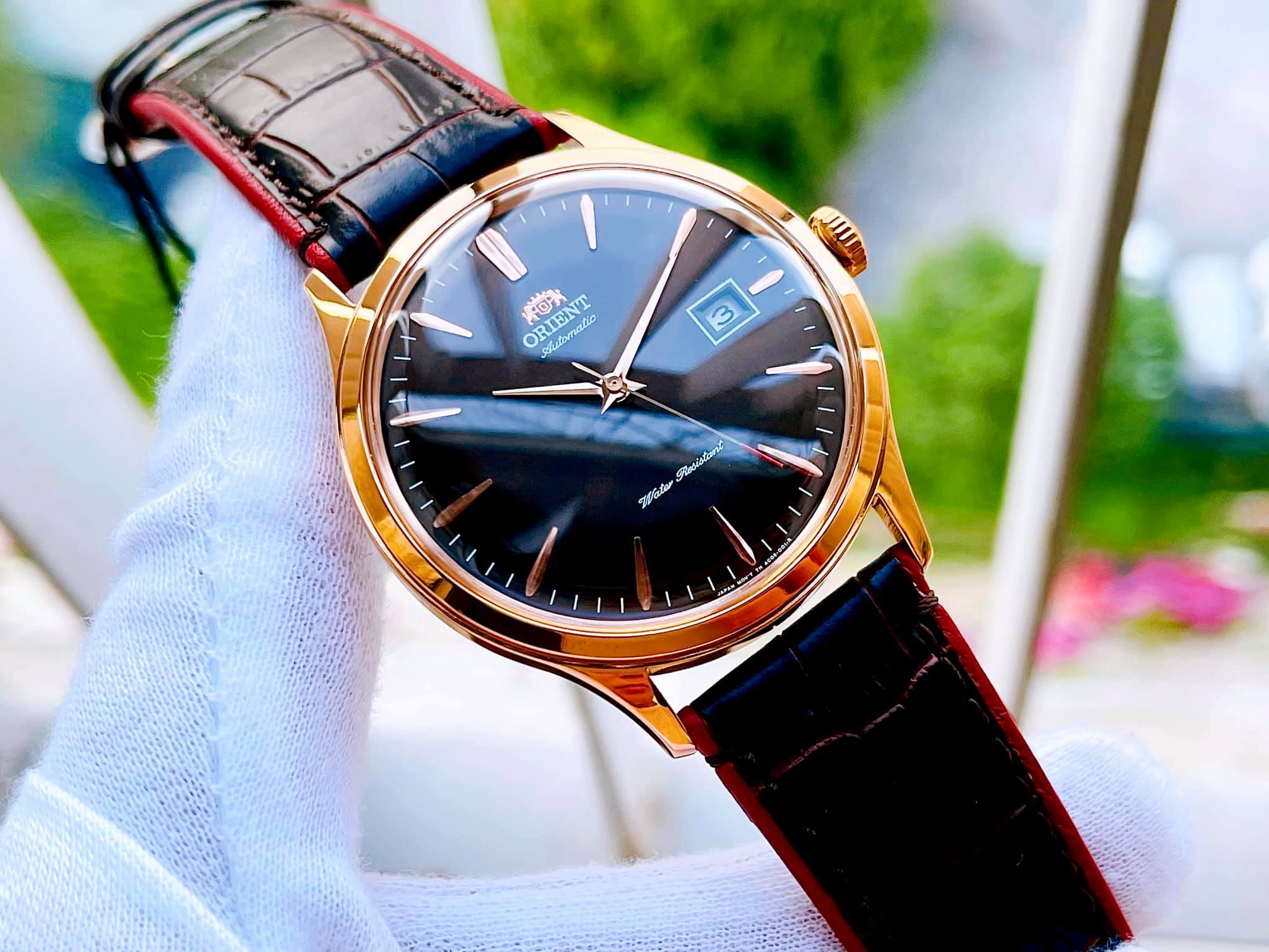 Đồng hồ nam Orient FAC08001T0 thiết kế với phong cách cổ điển, kim chỉ và vạch số được phủ đồng trên nền màu đen mạnh mẽ, kết hợp với dây đeo bằng da màu đen tạo nên vẻ lịch lãm cho phái mạnh