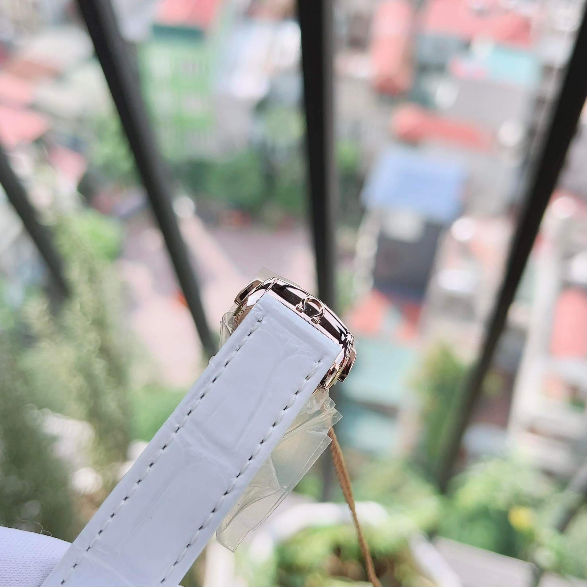 – Dây da trắng sữa hiện đại kết hợp khóa chống gập Vàng đúc 18k